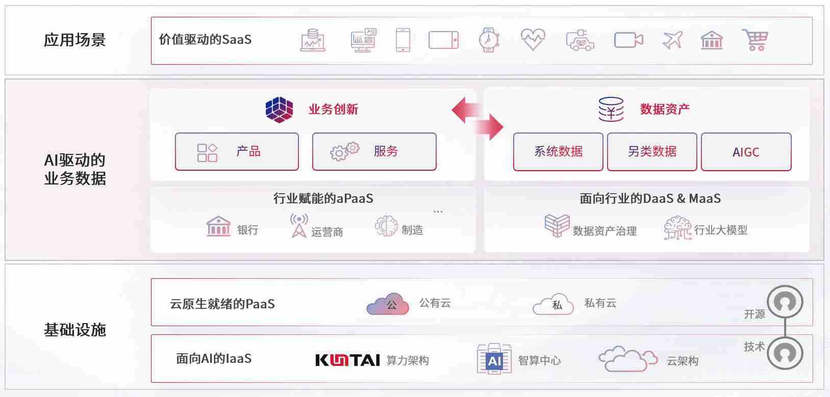 数字时代,,围绕企业数字化转型的关键要素,,,PG国际数码开创性的提出数云融合战略和技术体系框架,,,,着力在云原生、、、数字原生、、AI原生和信创产业上架构产品和服务能力,,,为处在不同数字化转型阶段的快消零售、、汽车、、金融、、、医疗、、、、政企、、教育、、运营商等行业客户提供泛在的敏捷IT能力和融合的数据驱动能力,,,构建跨界融合创新的数字业务场景和新业务模式,,,,助力企业级客户建立面向未来的核心能力和竞争优势,,,,全面推动社会的数字化、、、智能化转型升级。。