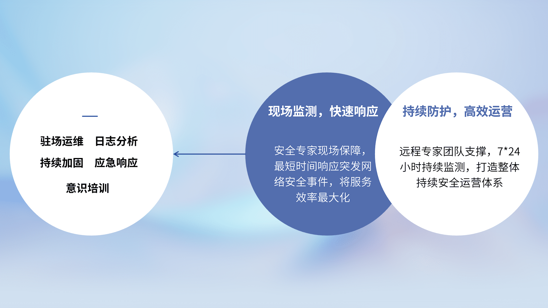 针对客户行业特性,,,,提供专属的一站式安全管理服务,,帮助客户全面感知网络空间威胁,,,通过安全专家的线上、、线下防护支持,,,实现风险闭环,,,将安全保障常态化,,,,为客户打造常态化安全运维运营服务。。。